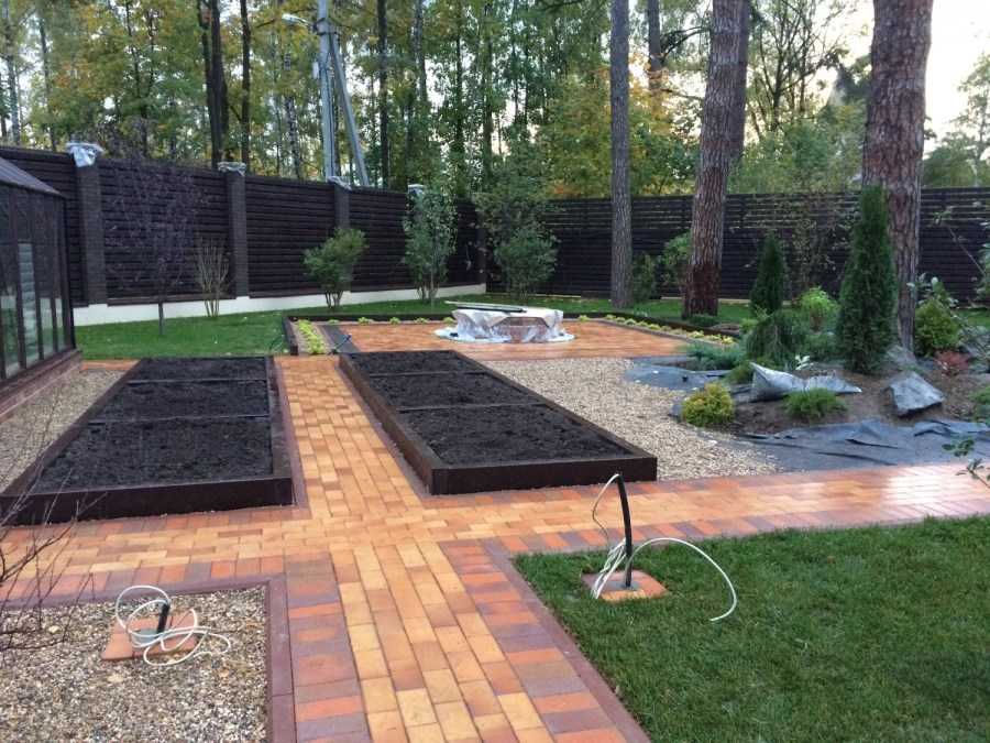 - Тропки должны объединять все ландшафтные структуры: теплицу, декоративный водоем, беседку, другие элементы;