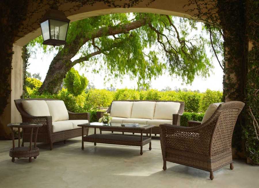 Бежевая плетеная мебель на террасе