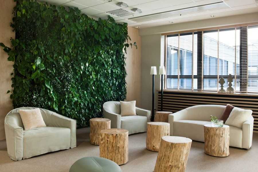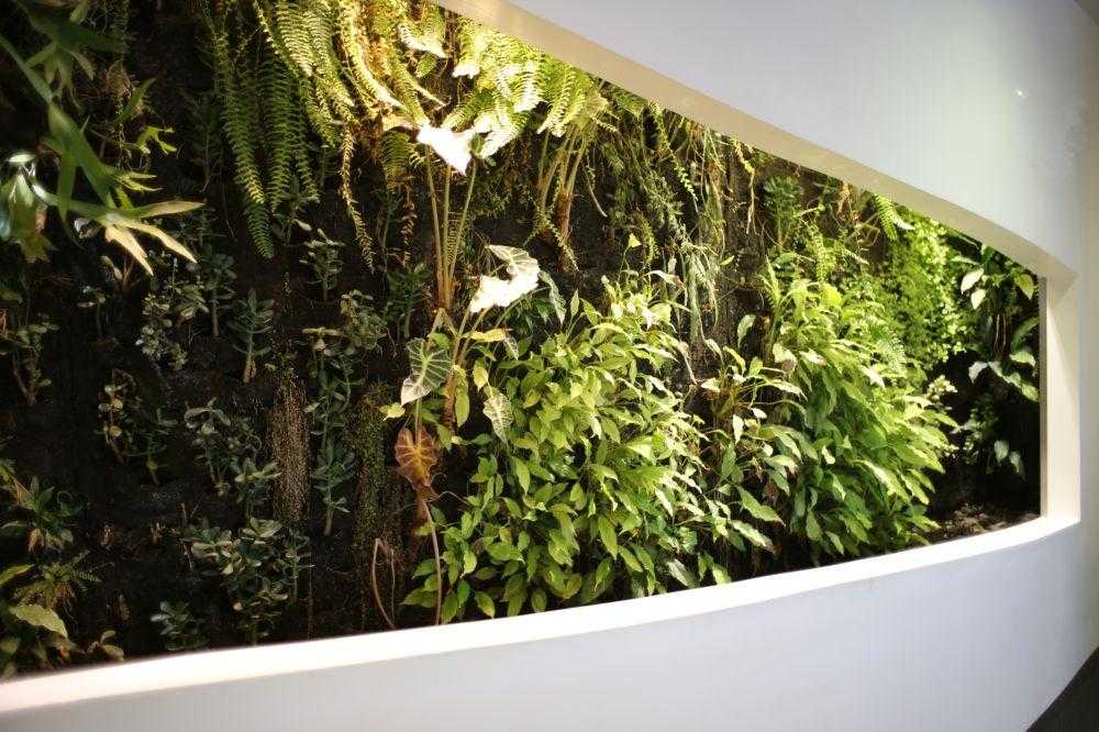 Полезная информация: Фитостена смотрится красиво и необыкновенно в любом интерьере. Однако при этом выполняет и полезные функции. Например, служит естественным препятствием для лишнего шума или может стать декоративной перегородкой для разделения разных зон комнаты.