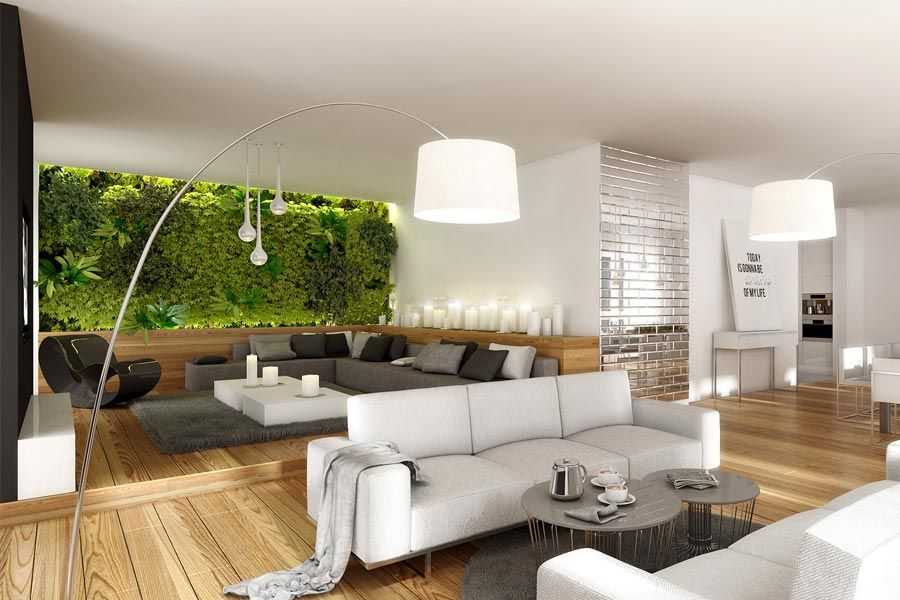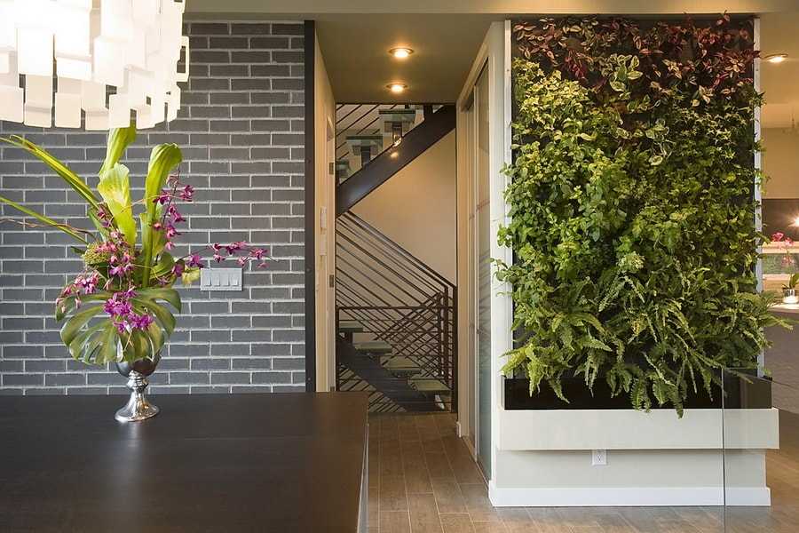 Зеленая стена — красивый и оригинальный способ зонирования пространства.