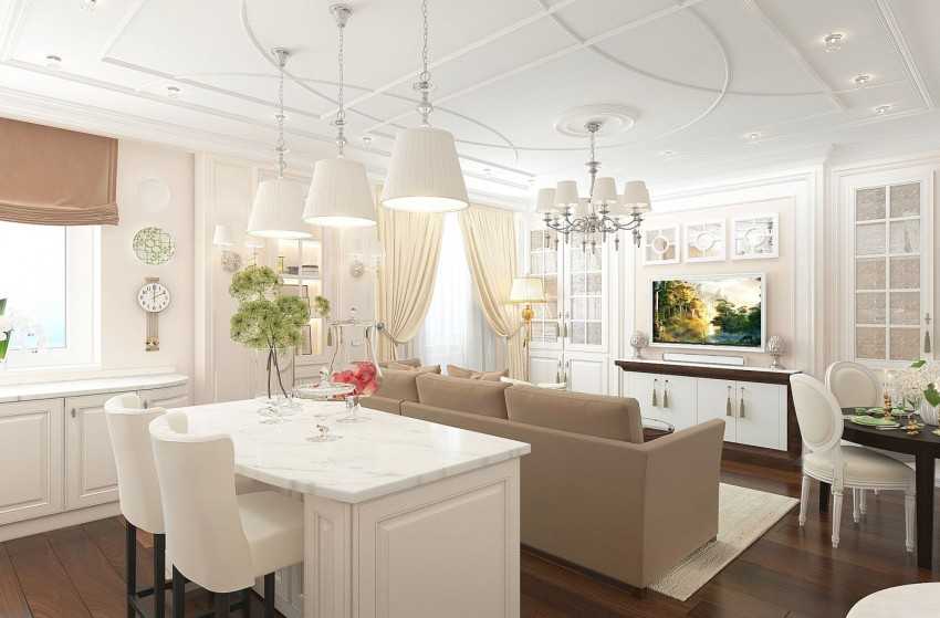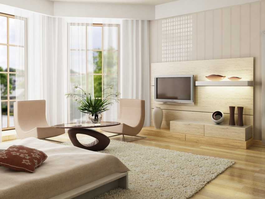 - Разноуровневость. Избегайте подиумов или выемок. Исключение — придание помещению правильной формы — то есть подиум можно сделать на эркере.