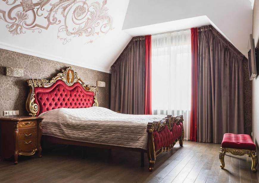 Главное, что нужно принять во внимание: спальня в стиле барокко должна быть достаточно внушительной по габаритам. Большой должна быть не только площадь, но и высота потолков помещения