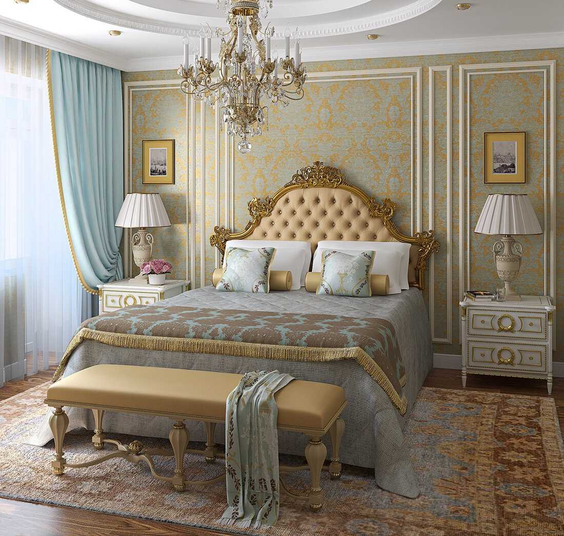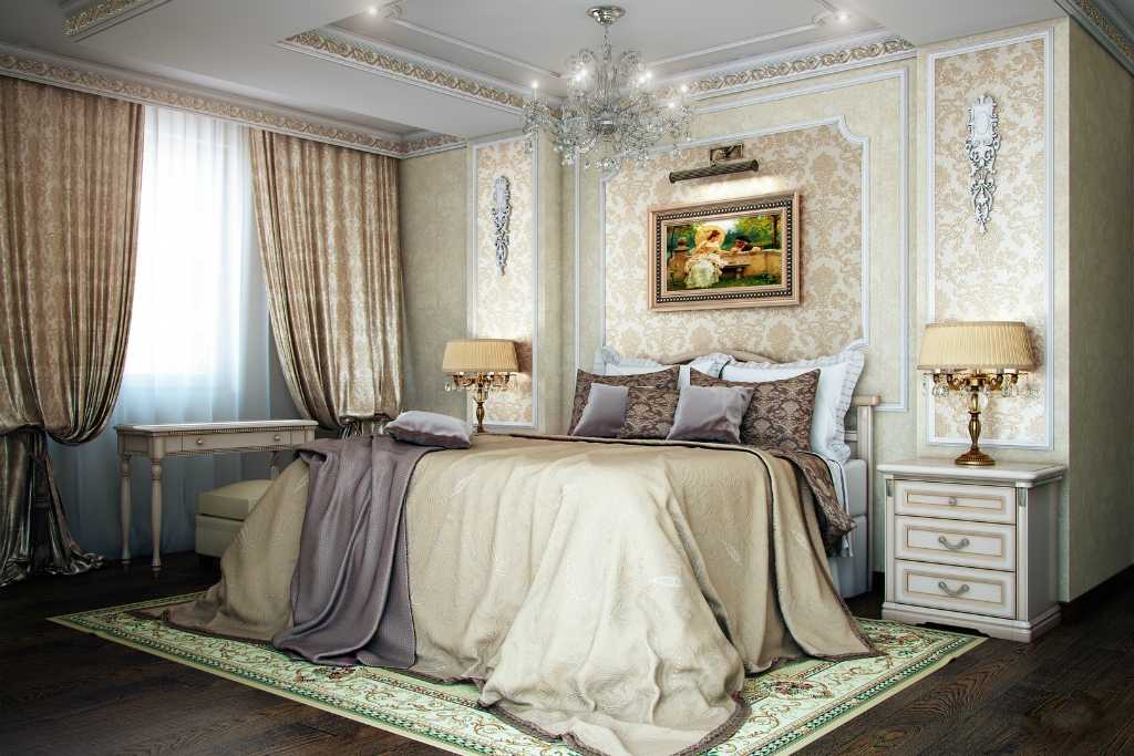 Классический интерьер спальни стремится повторить совершенство и уют императорских дворцов и королевских покоев