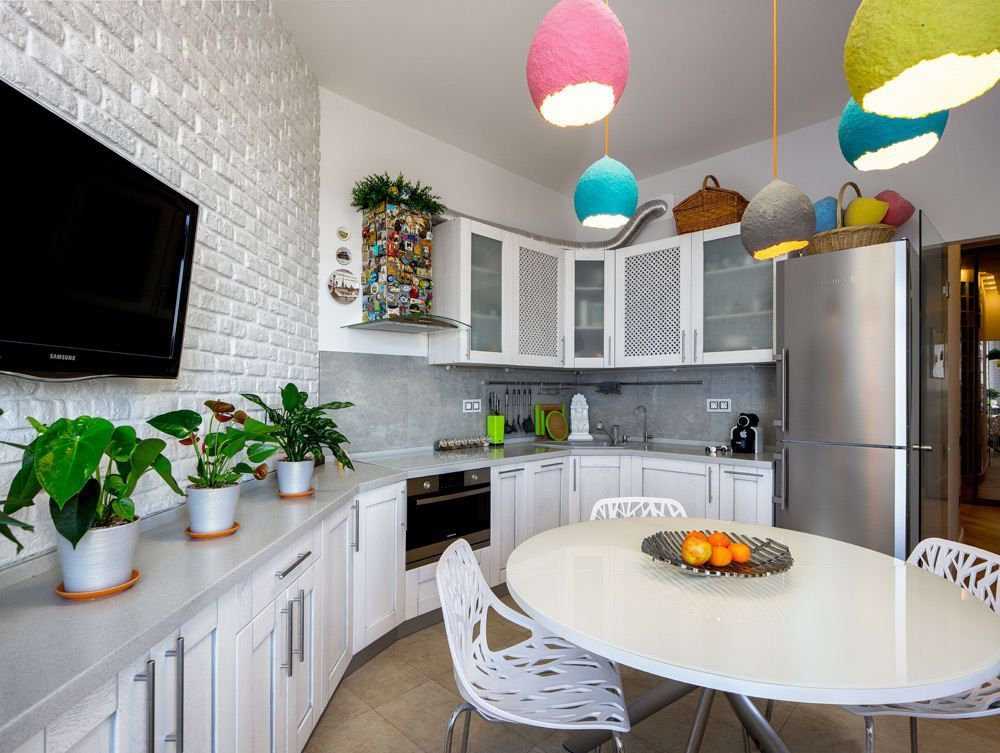 Совет! Если кухня имеет небольшую площадь, потолок и стены необходимо оставить в светлой нейтральной гамме. Яркие акценты, расставленные при помощи аксессуаров и декора, помогут расширить пространство и сделают кухню не такой скучной.