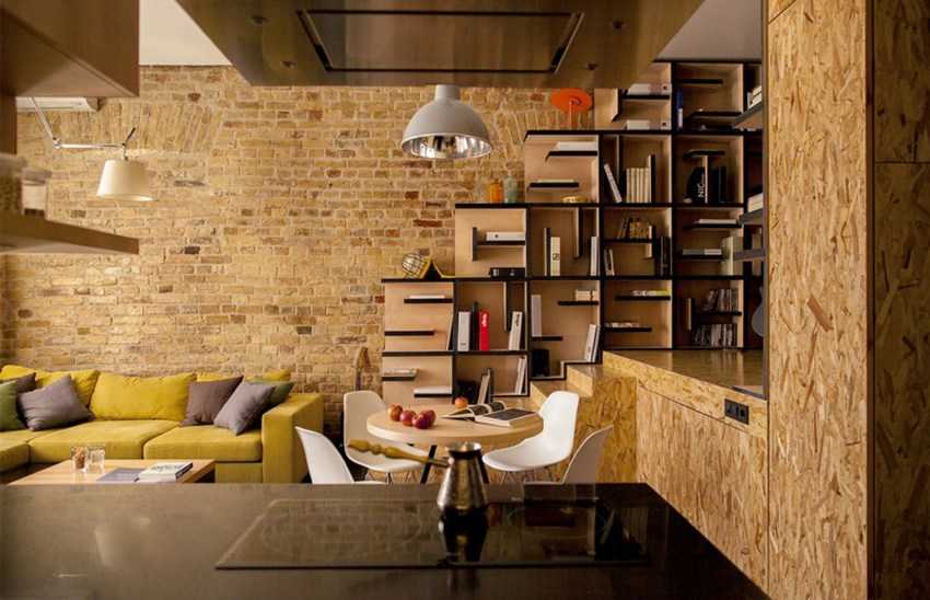 Предпочтение отдаётся стильному текстурированному сырью. Так, поверхность стен оформляют пробковым деревом, имитацией, либо натуральным кирпичной кладкой. Предметы мягкой мебели обивают бархатным материалом с драпировкой.
