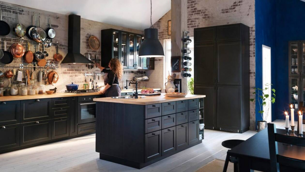 Купить недорогую модульную кухню сегодня можно в таких магазинах, как Икеа, Леруа Мерлен. В них нередко представлены уже готовые варианты компоновки модулей, которую можно взять за основу.