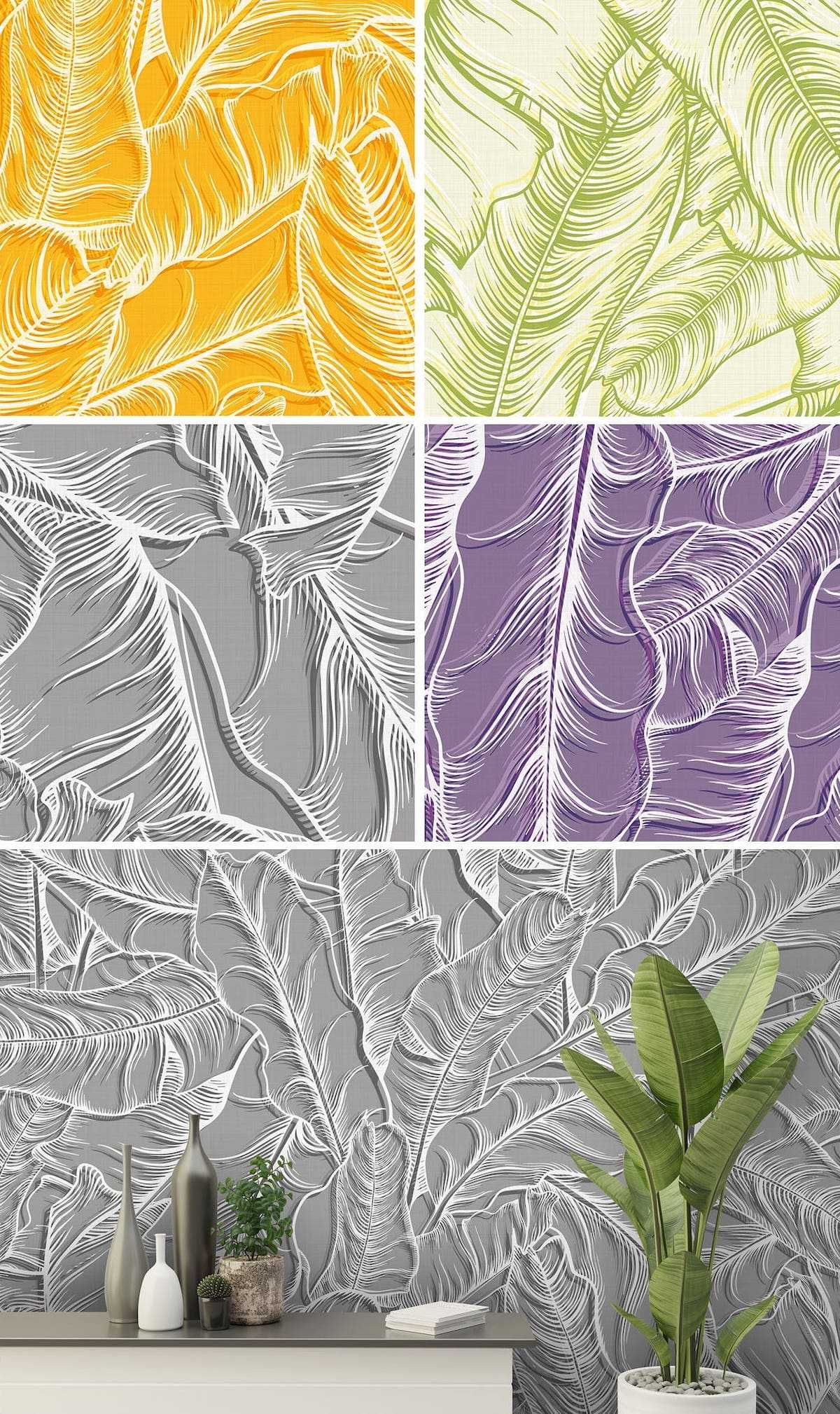Самый актуальный дизайн обоев 2021 с таким рисунком — бамбуковые заросли в сочных зелено-желтых оттенках. Свежее решение и фотообои, на которых изображены тропические деревья.