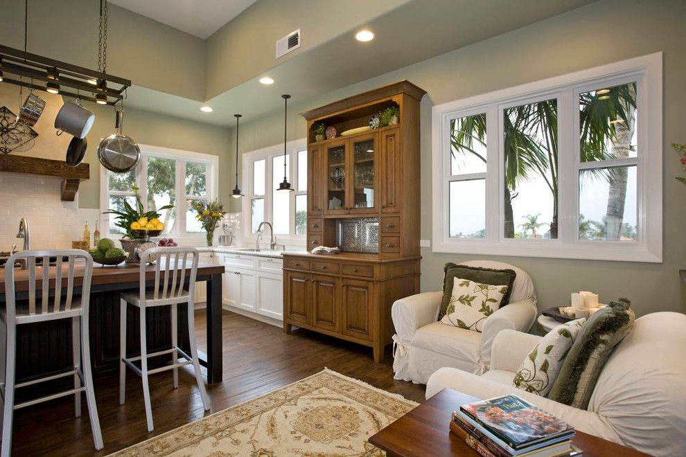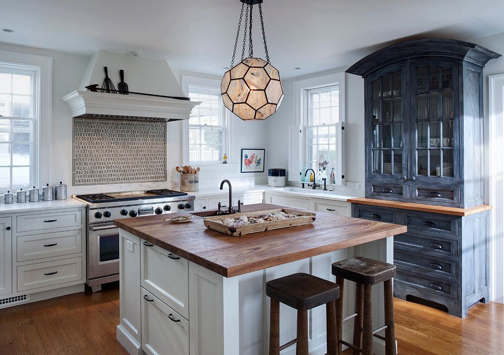 Мебель следует использовать в светлых тонах, но будет лучше, если кухонные столешницы останутся деревянными. Если у вас есть фарфор, который вы унаследовали от бабушки, не забудьте показать его. Благодаря этому, он станет не только полезным кухонным оборудованием, но и отличным украшением. Что еще нельзя пропустить: