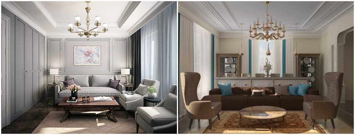 Изящная и изысканная мебель для гостиной в неоклассическом интерьере