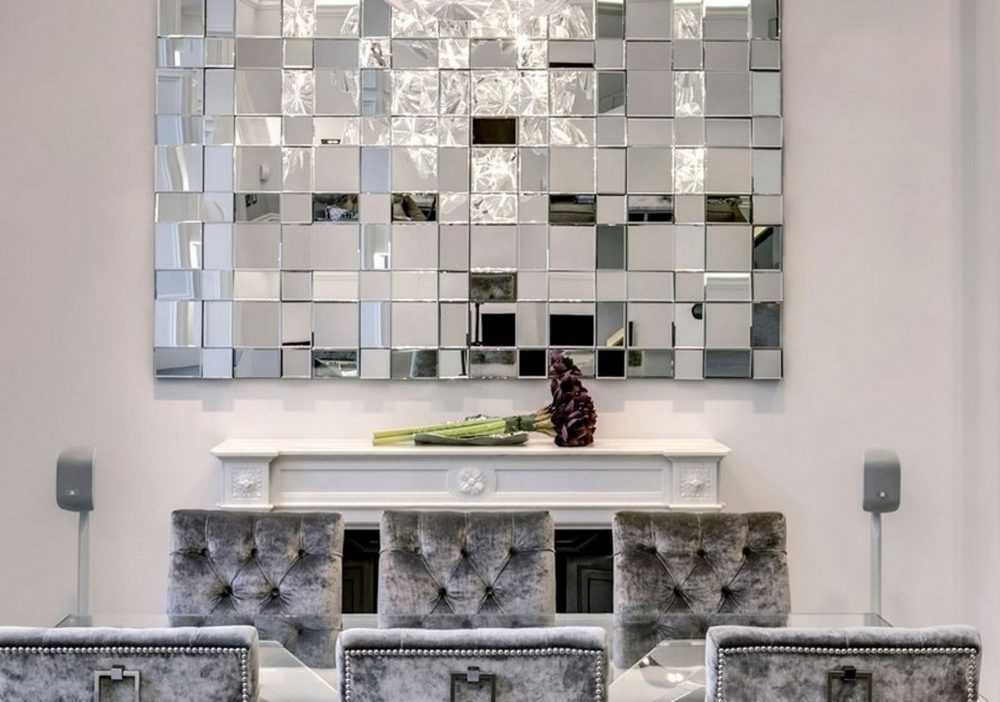Панно. Настенные зеркальные панно с фацетом привычны в европейских интерьерных проектах; они относятся к обычным способам украшения гостиной. Обычно панно формируется из элементов ромбовидной формы, которая наилучшим образом преломляет световые лучи и наиболее эффективно их отражает. Если вы хотите использовать небольшое панно, привлеките к нему максимум внимания, повесив, например, над камином.