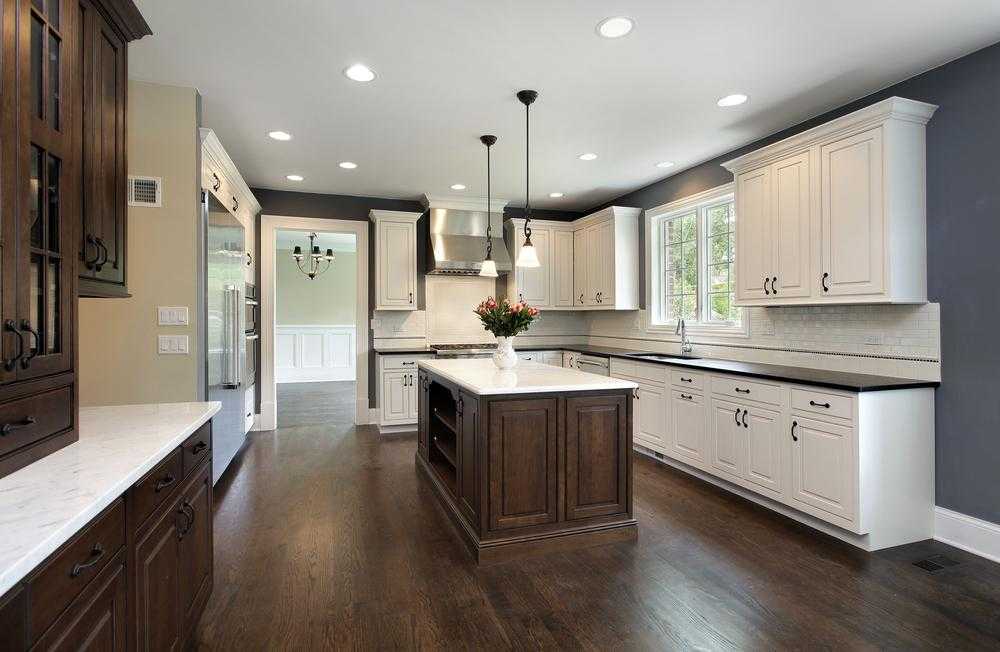 Сочетание цветов в кухонном гарнитуре может быть различным. Чаще всего предпочтение отдается схеме «темный низ — светлый верх».