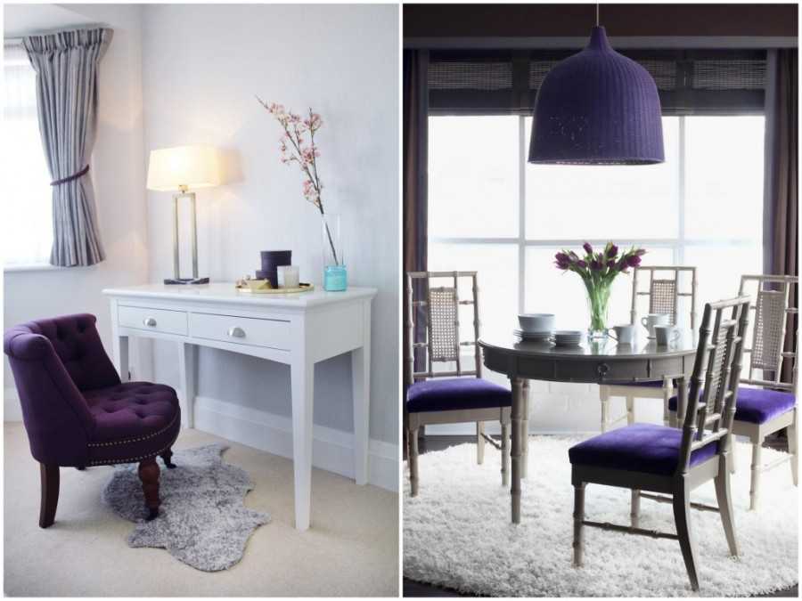 Эксперты советуют экспериментировать и соединять фиолетовый цвет с серым, белым или добавить каплю пикантности – салатового, лососевого тона.