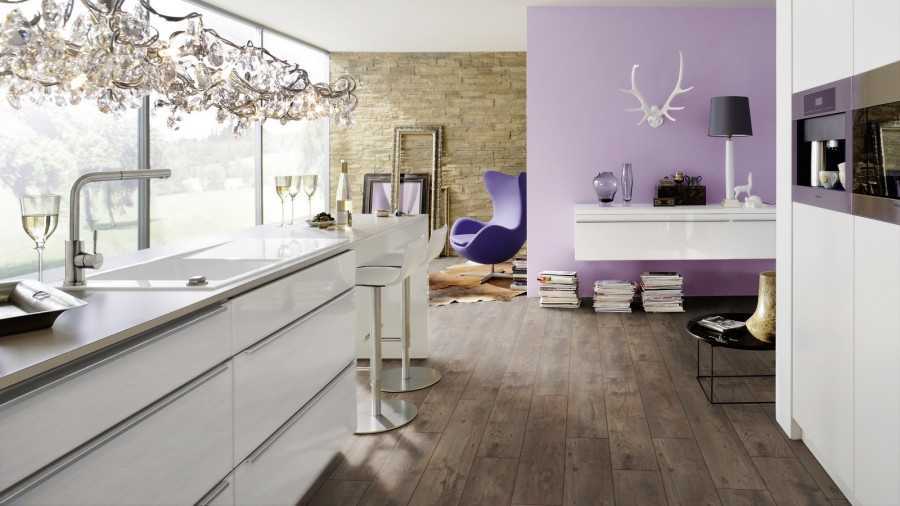 Белый цвет универсален, поэтому сочетается со всеми оттенками и одинаково уместно смотрится в любом помещении. Так, в компании с лавандовым оттенком, белый делает интерьер нежным и романтичным.