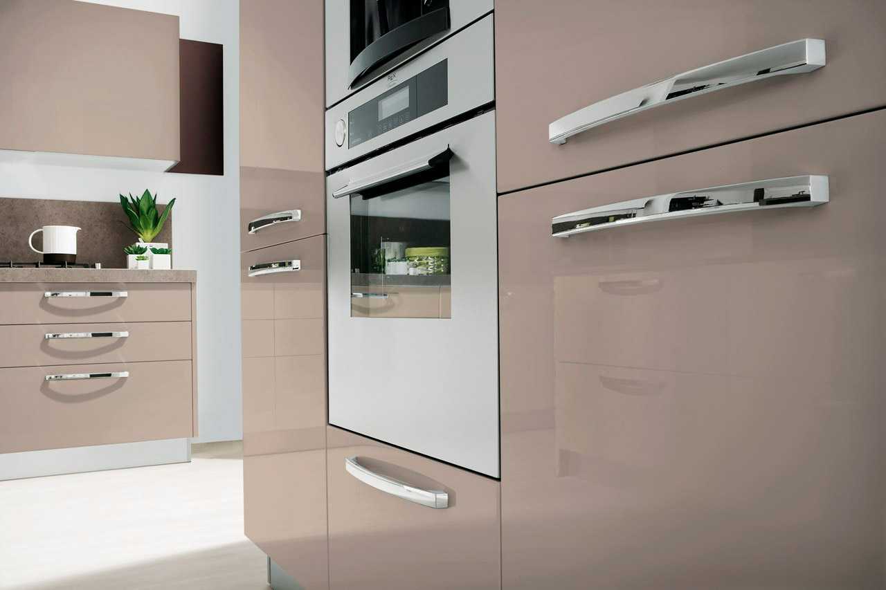 Главное правило выбора — все ручки должны быть одно цвета и не различаться по оттенкам или блеску. В зависимости от цвета и фактуры фасадов, столешницы могут уместно смотреться хромированные, черные, бронзовые варианты.