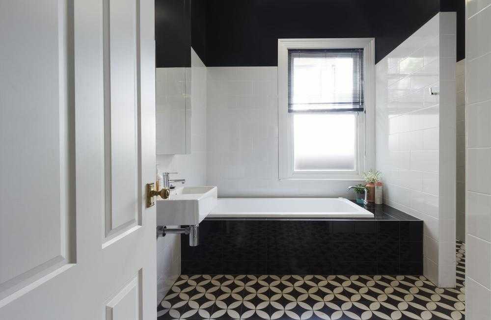Черный цвет плитки в ванной — является угнетающим. Придает интерьеру строгость и лаконичность. Аристократические ванные с богатым интерьером строятся на основе черного, белого, красного и золотого. Большое количество черного вызывает раздражение. В умеренных количествах пробуждает творческий потенциал, придает интерьеру изысканность.