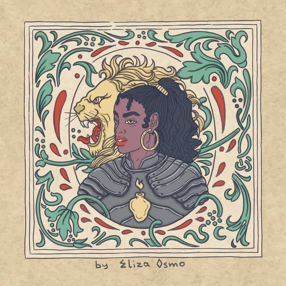 Они креативно изображают узнаваемые символы силы, такие как богини, звезды и закаленные львы. Мы также видим, как дизайнеры модернизируют классические визуальные мотивы, например, средневековый герб и витражи, представленные выше. С помощью классических символов дизайнеры создают талисманы, которые нам пригодятся, чтобы отогнать отчаяние в наступающем году.