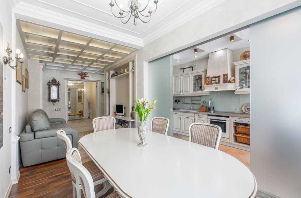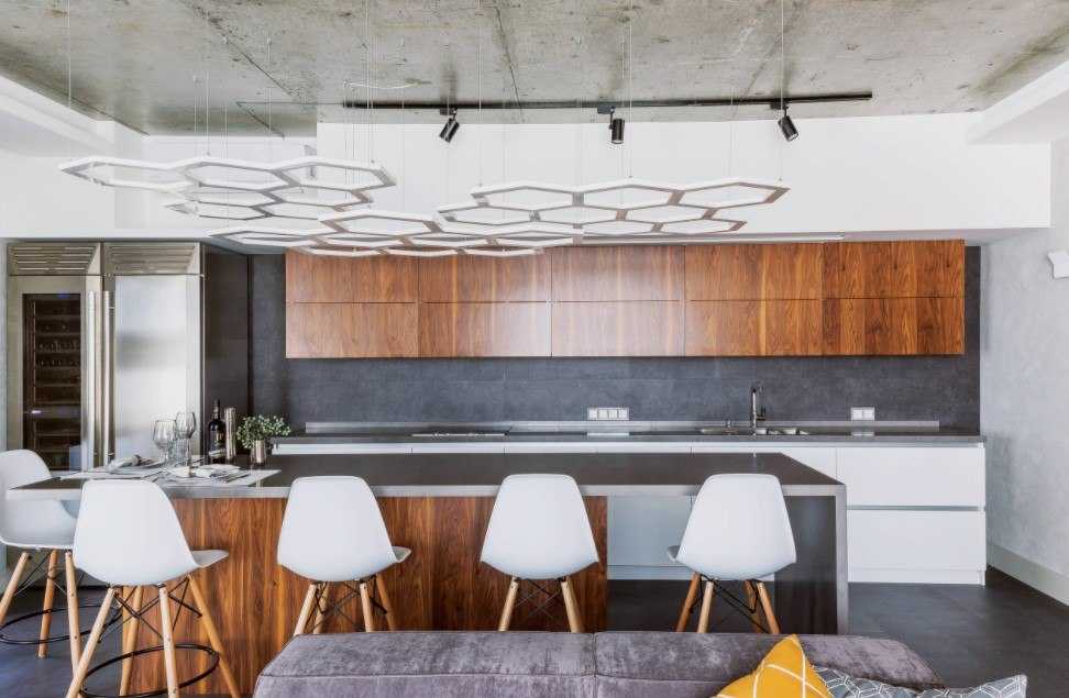 Если, например, гостиная соединена с кухней, и ее площадь больше 14 метров, рекомендуется дважды акцентировать внимание и на гостиной, и на кухне.