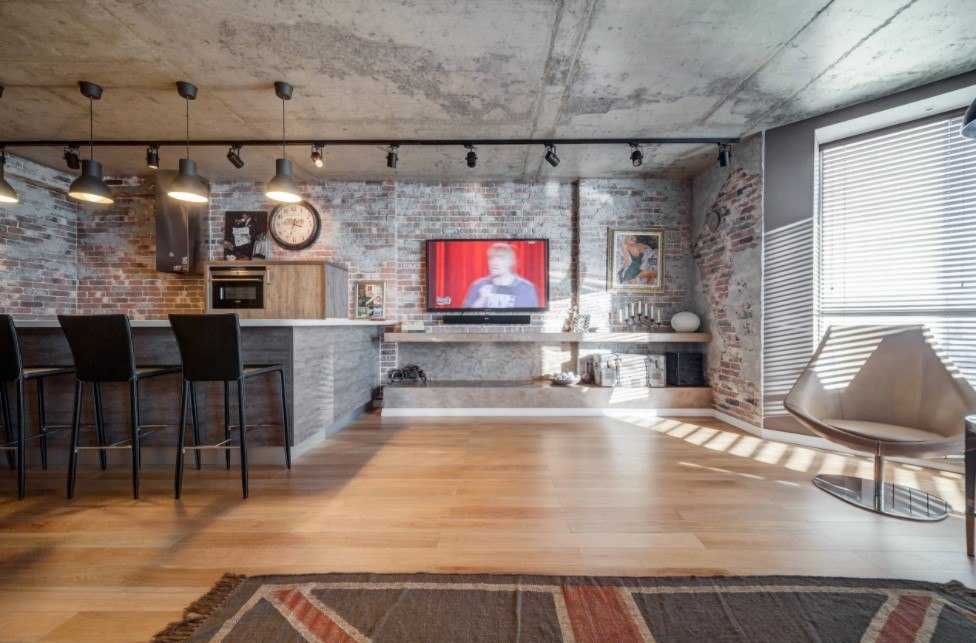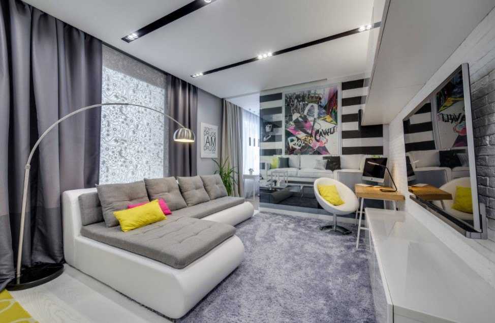 Интерьер гостиной, совмещенной со спальней