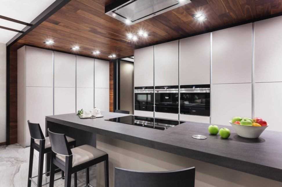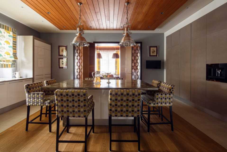 При высоких потолках вы можете использовать самые разные виды подвесных, комбинированных и натяжных конструкций, экспериментировать с подсветкой и освещением. А придать более современного вида помещению могут многоуровневые гипсокартонные конструкции в комбинации с натяжными полотнами и зеркальными вставками. А кассетные разновидности подчеркнут любой современный стиль.