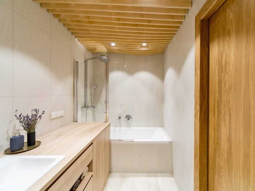 Минусами такого потолочного покрытия являются: трудности при выборе осветительных приборов, так как не многие могут подойти по стилю, а также то, что такой потолок визуально сужает пространство и неуместно смотрится в маленьких помещениях с низкими потолками. Однако существует и немало плюсов, главным из которых, безусловно, является его практичность. Он обладает прекрасной звукоизоляцией и пожароустойчивостью, а также отличается экологичностью и дешевизной.
