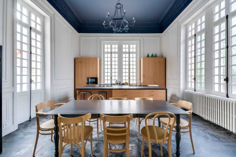 Бетонный потолок выглядит стильно и грубо. Он прекрасно впишется в интерьеры в стиле индастриал, минимализм или лофт. Чаще всего такие потолки выполняются в строгой монохромной гамме, в белых, серых или тёмно-серых цветах.