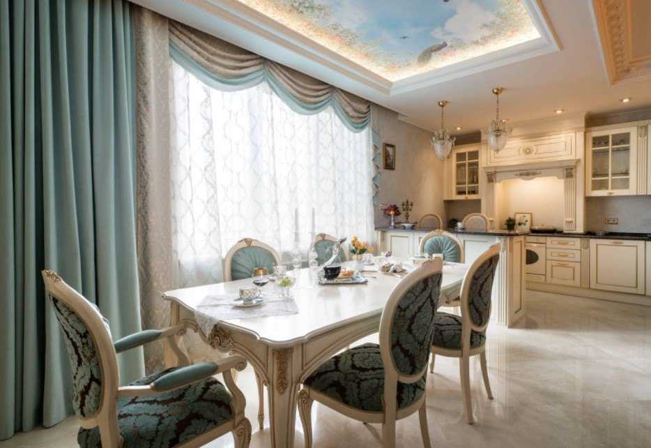 Одни из самых просторных помещений в доме или квартире обычно отводится на гостиную комнату. Именно поэтому потолки могут быть самыми разными и интересными. Если потолки в вашем помещении низкие – советуем остановится на классических вариантах покрытия. К примеру, можно выполнить окрашивание потолка с использование плавного градиента. Потолки, которые выполнены в венецианской технике с использованием штукатурки, выглядят эффектно и хорошо вписываются во многие стили, включая классический.