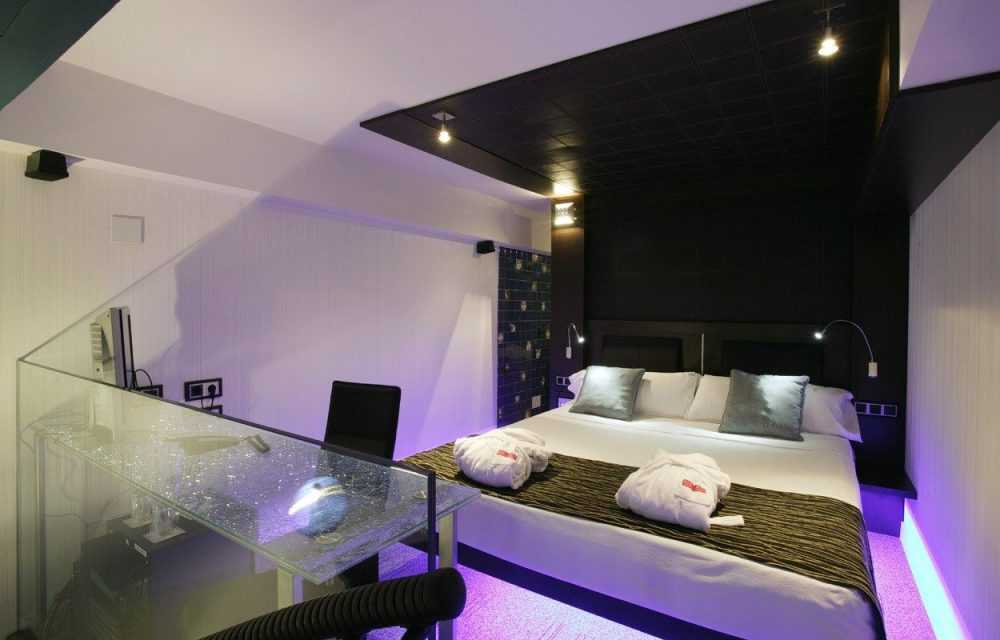 Вот здесь не рекомендуется организовывать пространство на 100% в стиле хай-тек. Лучше всего добавить лишь некоторые его детали. Например, кровать без изголовья с подсветкой, встроенной в корпус, будет смотреться современно. Дополните интерьер бра в строгом стиле – и вот готовая частичная реализация стиля хай-тек.