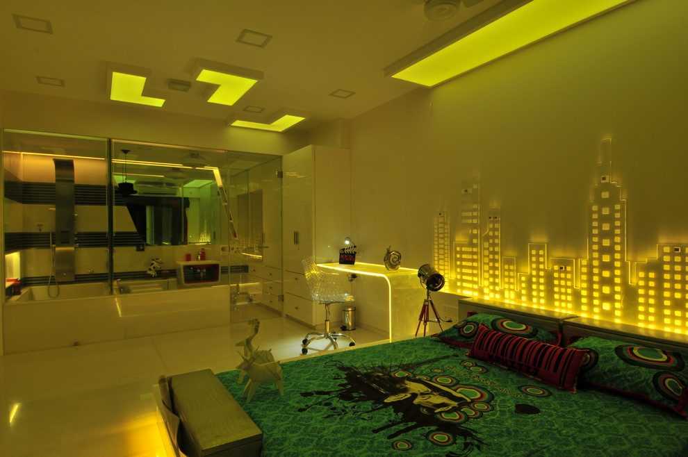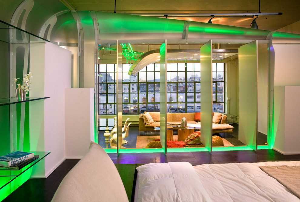 Яркий дизайн комнаты в стиле хай тек