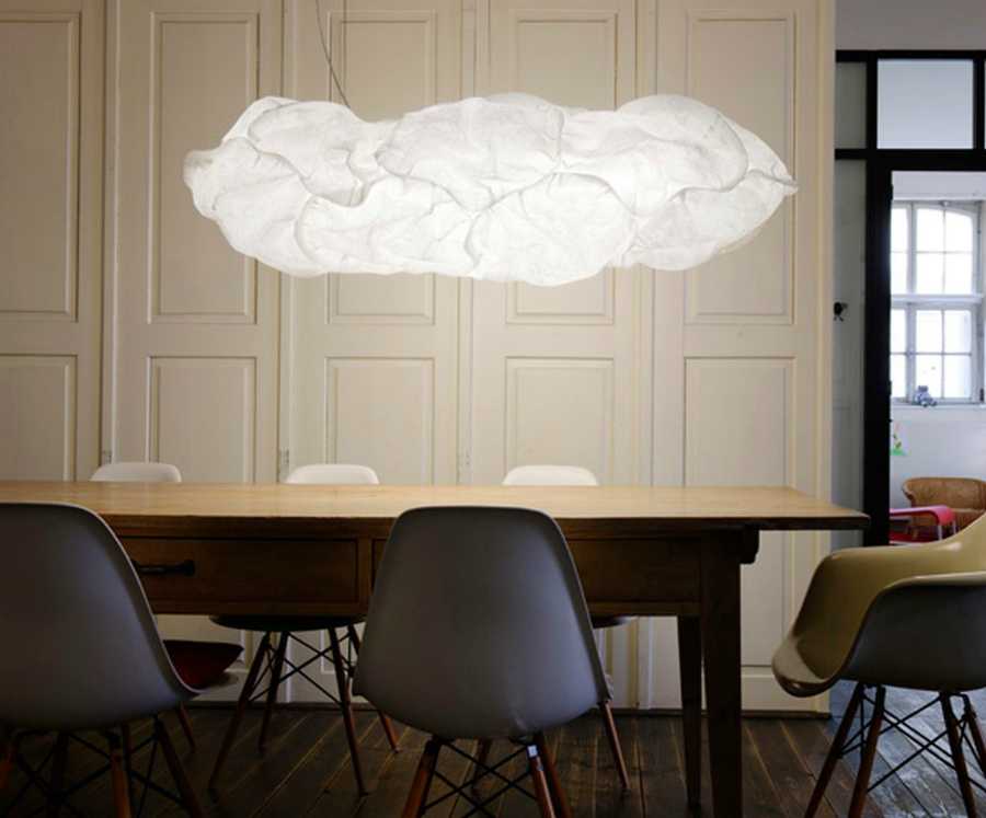Светильник Mamacloud дизайнера Франка Гери (Frank Gehry) из компании Belukh представляет собой облако — такое невесомое и светлое (в прямом смысле этого слова), что так и ждешь, что из него вот-вот закапает дождик.