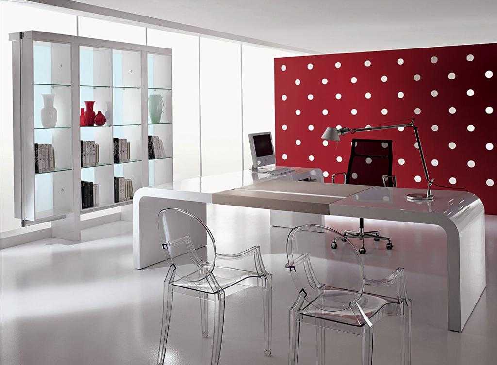 Важно правильно оформить помещение. К примеру, стол нужно расположить перед оконным проемом: он выделит фигуру девушки. Лакированная мебель в кабинете директора