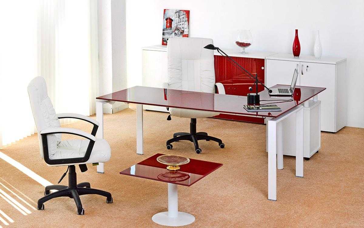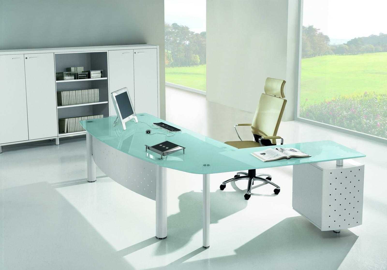 Дизайн интерьера кабинета руководителя со стеклянным столом