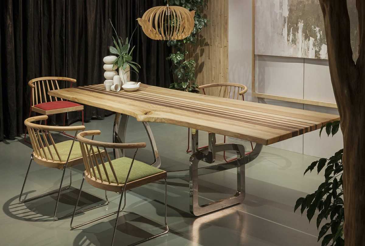 Деревянная мебель для столовой комнаты уютно вписывается в классический стиль, прованс. Для стилей хай-тек или минимализм столы желательно выбирать со стеклянными столешницами, укомплектованные металлическими или деревянными ножками.