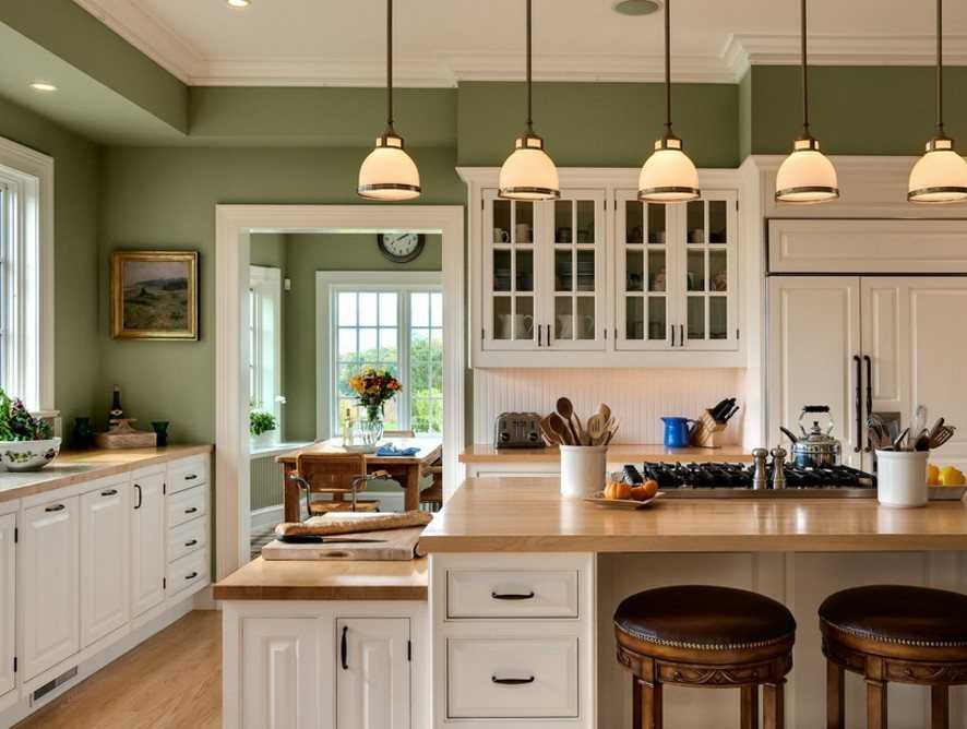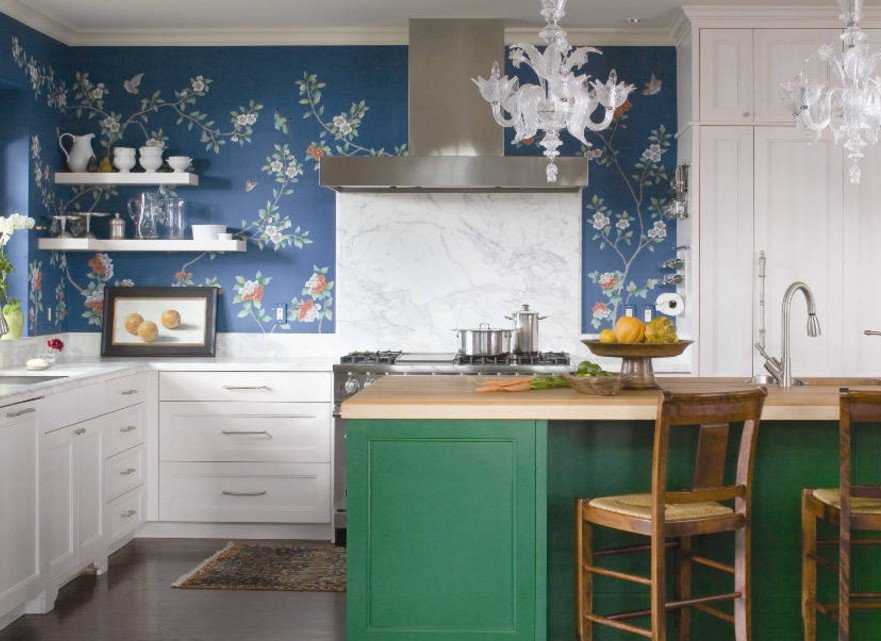 - Яркая теплая цветовая гамма (зеленый, желтый, сливочный, оранжевый, красный) поможет создать в помещение ощущение радости, усилить аппетит.