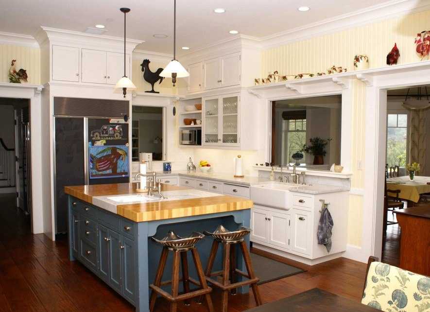 Стиль кантри обычно перегружен мелкими деталями, поэтому красивые картинки на кухню желательно выбирать крупные, задающие масштаб помещению. Тематика – сельская жизнь: домашние животные, птицы, натюрморты, сельскохозяйственные работы. Прекрасно ответит стилистике кухни кантри рукоделие хозяйки: вышивки, панно в стиле пэчворк.
