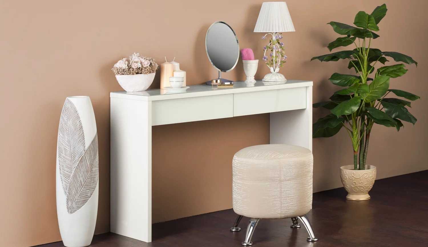 - Ценителям практичных и функциональных предметов, а также при дефиците пространства подойдут модели-трансформеры или консоли с ящичками, способные заменить письменный стол или небольшую тумбу.