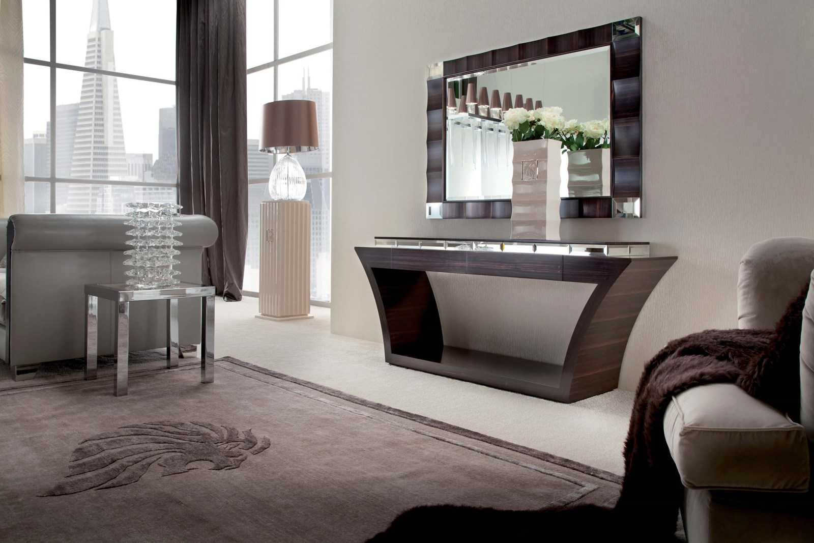 Многие мебельные гарнитуры имеют в составе консольные столики, выполненные в том же стиле, что и основная мебель. Например, подобные композиции есть у фабрики Giorgio collection.