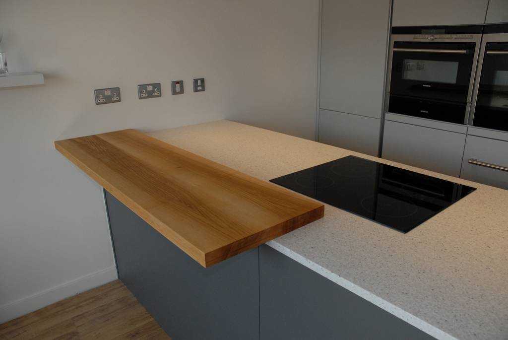 Если кухонное помещение немаленькое, то мебель стоит приобрести основательную и прочную — из дуба, например. Формы таких предметов — только простые и незамысловатые геометрические фигуры, без декоративных элементов.