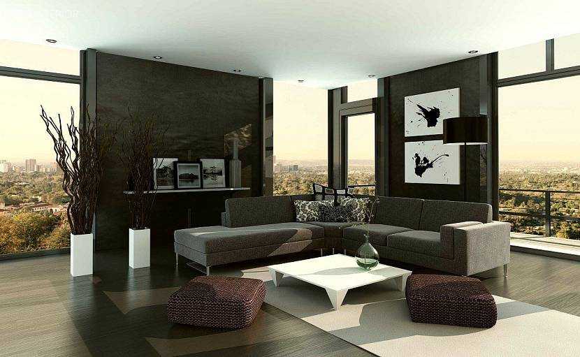 - Строгая цветовая гамма. Эта особенность характерна для большинства современных стилей. В конструктивизме используют серый, черный, коричневый, но также допускают наличие ярких акцентов.