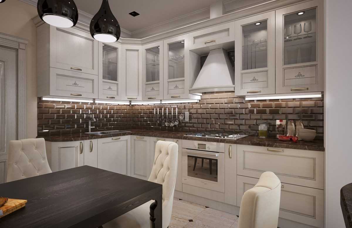 Интерьер в классическом стиле предлагает открытую планировку. По задумке дизайнера, гостиная совмещена с кухней. Такое решение особенно актуально для малогабаритных помещений. Спальное место скрыто от посторонних глаз за небольшой перегородкой, выполненной из стекла.
