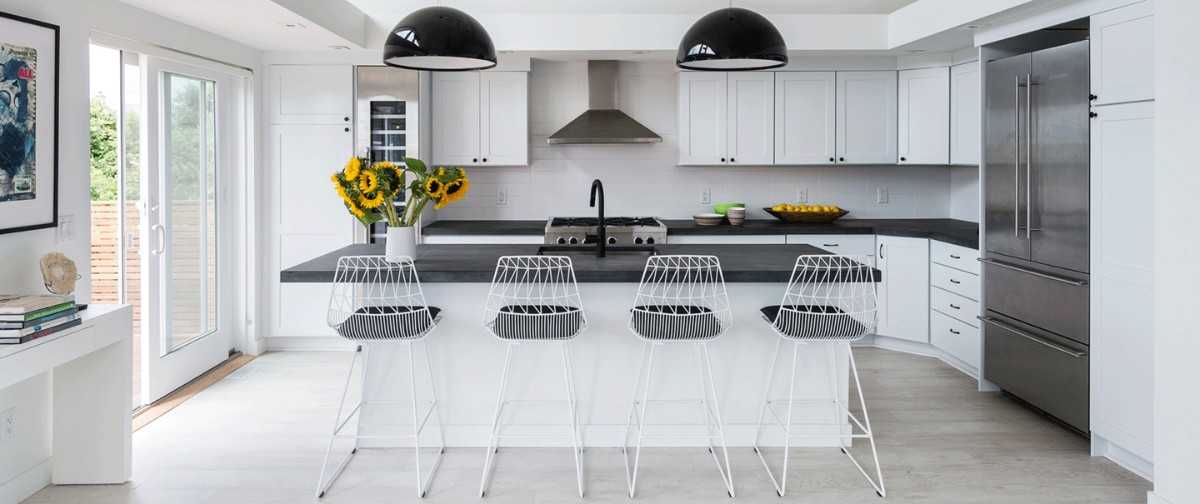 Кухня давно перестала быть просто местом для приготовления пищи. Именно поэтому дизайну здесь уделяется много внимания. На фото ниже изображена белая кухня с яркими акцентами. Ну как не влюбиться в эту магию цветовых комбинаций?