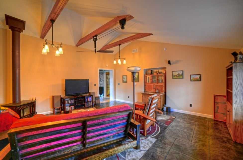 В обустройстве гостиной вы можете в полной мере воспользоваться двойственностью этого цвета, его сочностью, сиянием и обволакивающим теплом. Общительная функция этой комнаты позволит вам расположить его немного более экстравагантно и художественно, с дополнениями и композициями цветов и узоров.