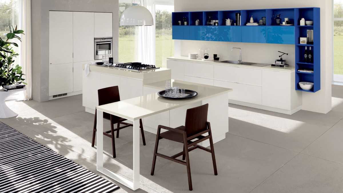 Синий — идеален для тех, кто слишком импульсивен по натуре. Этот цвет способен утихомирить самого гиперактивного человека. Если вы хотите научиться контролировать свои эмоции, добавьте вкрапления синего на белой кухне. Со временем вы заметите, насколько проще вам станет сдерживать проявления темперамента. Кухни с синими акцентами создают ощущение размеренности и умиротворенности. Вот, взгляните на фото-примеры дизайна.