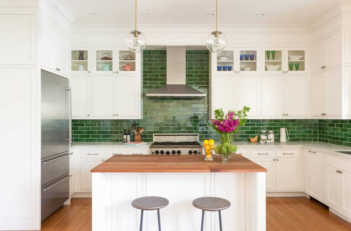Яркий цвет морских волн, сочетающий в себе природную силу зеленого и спокойствие синего — отличный выбор для расстановки акцентов на белой кухне. Бирюзовый нравится творческим людям, которые полны идей. Вот взгляните на примеры. Цвет морской волны помогает сделать стерильный интерьер светлой кухни теплым и домашним.