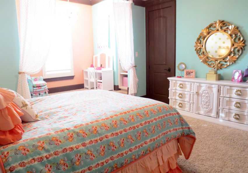Сюда выбирают элегантную мебель из древесины, в бежевых, персиковых, бирюзовых или карамельных оттенках, имеющую добротный, дорогой, эстетичный и небанальный вид. Для украшения применяют резьбу, балдахины из тяжелой ткани, подушками с изящной вышивкой со стразами, шелковую или бархатную обивку.