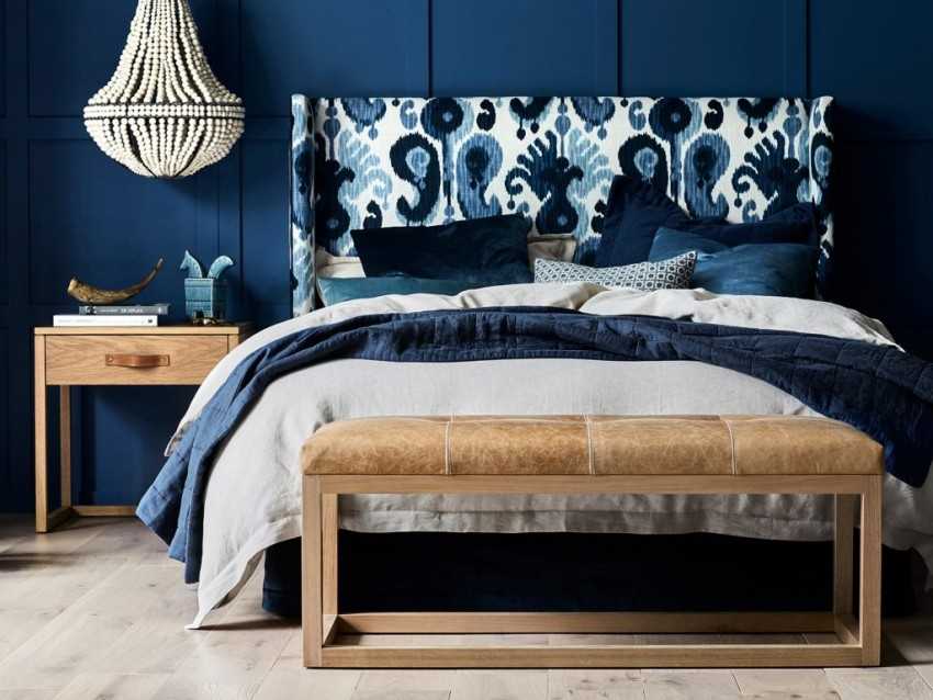 Стиль изголовья диктует интерьер спальни с мягким изголовьем.