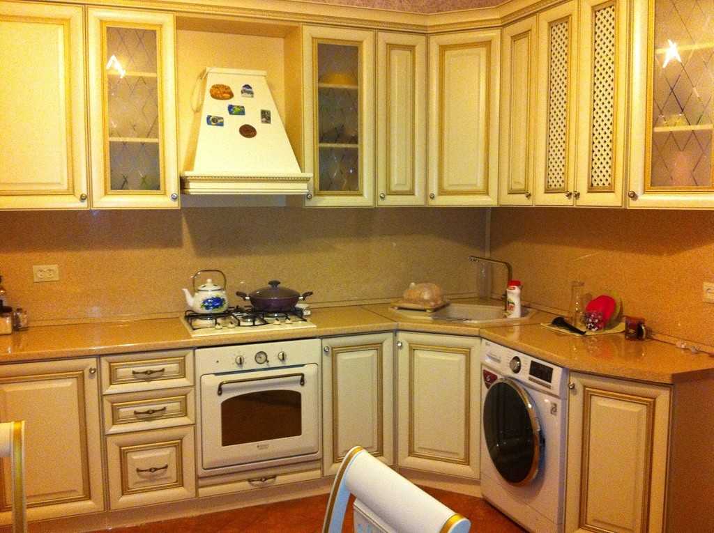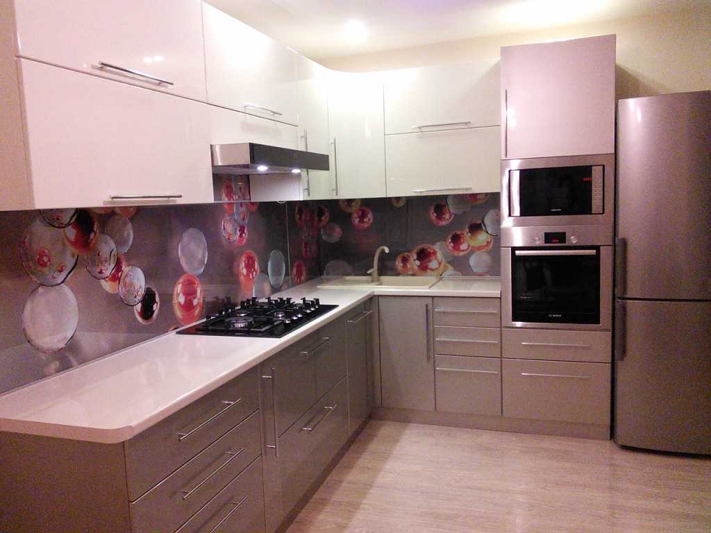 Фартук для бежевой кухни может быть как обычного белого цвета, так и сочного, яркого апельсинового, красного и фиолетового при условии, что элементы такого цвета есть в интерьере. Такие оригинальные вставки сделают бежевую кухню яркой и необычной, придадут ей энергии и жизни.