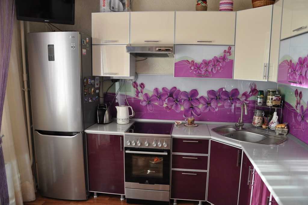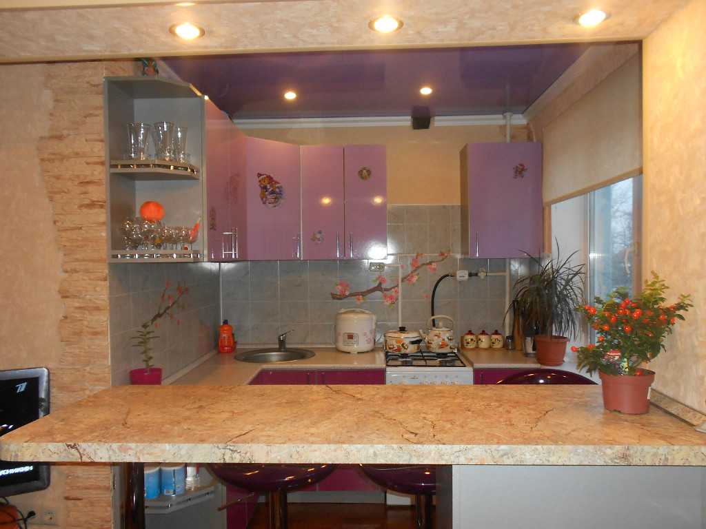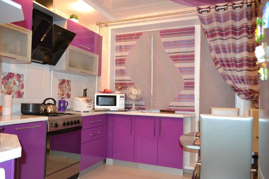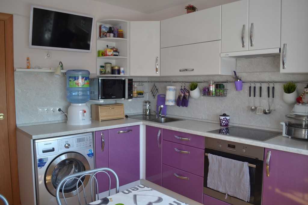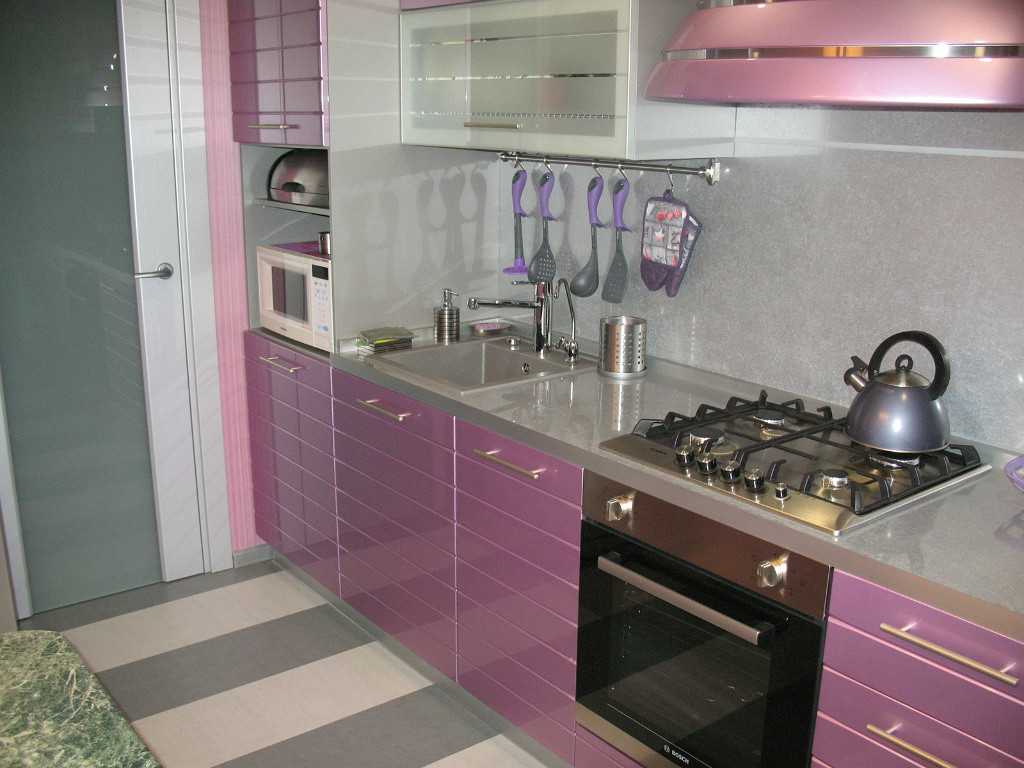 Обустройство интерьера маленькой кухни в фиолетовых тонах
