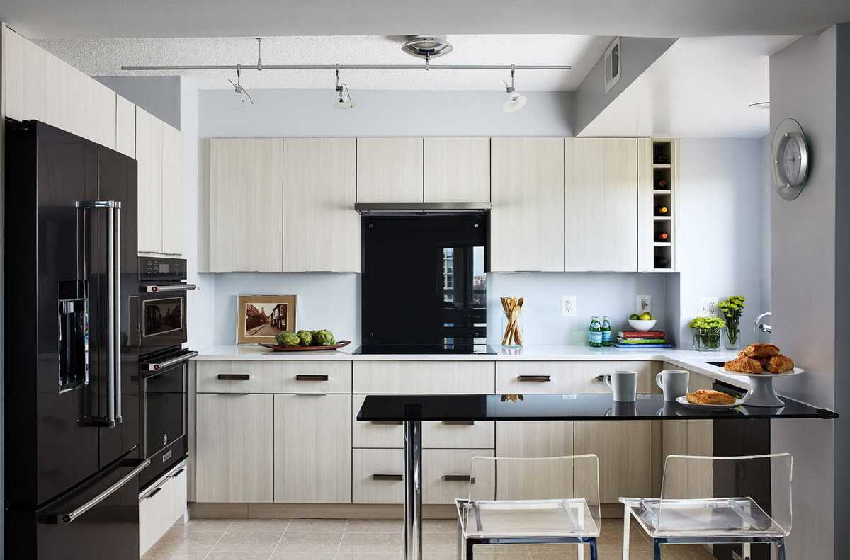 Очень важно, чтобы вся мебель была расставлена на кухне правильно. Для маленьких помещений специалисты советуют выбирать линейную или Г-образную планировку, полностью отказавшись от островной, двухлинейной и П-образной планировки