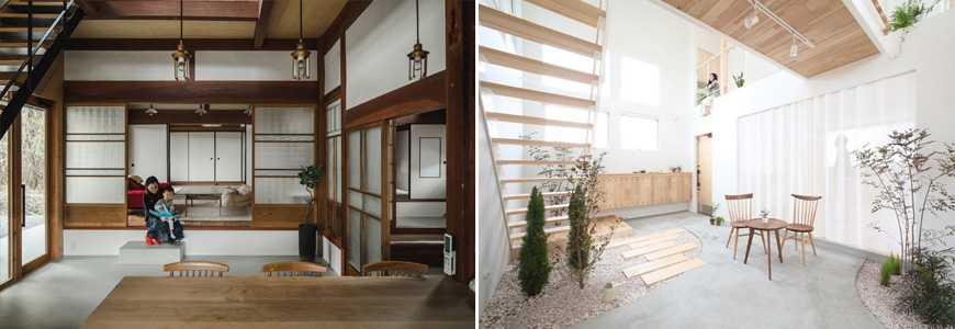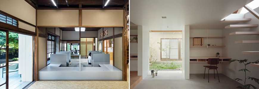 В традиционных японских домах зонирование и организация пространства достигается за счет раздвижных перегородок. Когда из пустого единого пространства, появляются комнаты, которые затем можно легко трансформировать и превратить в пустоту.