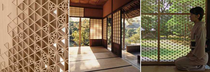 Это принцип говорит о том, что должно быть отсутствие повторений, определенного паттерна. В качестве примера может служить традиционная для Японии панель «кумико». Это панель на раздвижных перегородках. Объемный узор под разным углом и освещением смотрится оригинально и лаконично.
